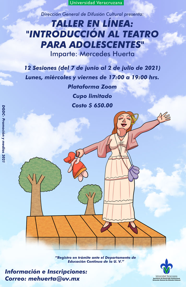 La Dirección General de Difusión Cultural de la Universidad Veracruzana, abre las inscripciones para el nuevo Taller en línea: Introducción al teatro para adolescentes.