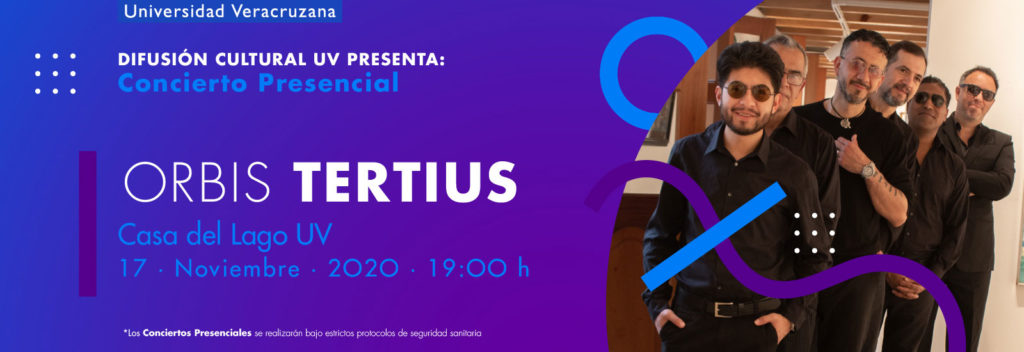 La Dirección General de Difusión Cultural Presenta a Orbis Tertius el próximo martes 17 en la Casa del Lago UV en punto de las 19:00 horas en una presentación musical que forma parte de la cartelera de conciertos presenciales del mes de noviembre para el deleite de los asistentes.