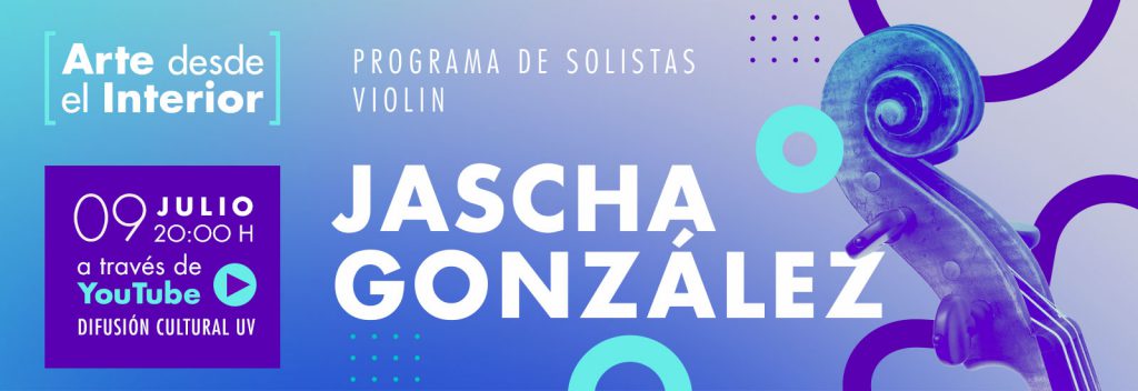 La Dirección General de Difusión Cultural de la Universidad Veracruzana continúa con su segmento de programa de solistas en su segunda intervención el próximo 9 de julio con la participación del Violinista Lázaro Jascha González Muñoz, integrante de la Orquesta Sinfónica de Xalapa.