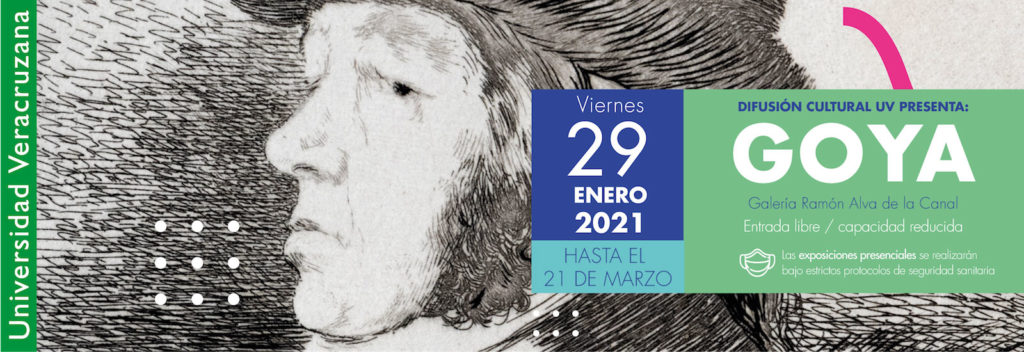 La Dirección General de Difusión Cultural presenta la exposición “Goya” en la Galería Ramón Alva de la Canal, la muestra se compone de dos partes: Una importante selección de la serie de “Los caprichos” creada en 1799 y “Goya Grabador: Procesos e influencias”, que reúne otros ejemplos magistrales del grabado de Goya sumados a un pequeño recorrido por autores españoles influenciados por su obra.