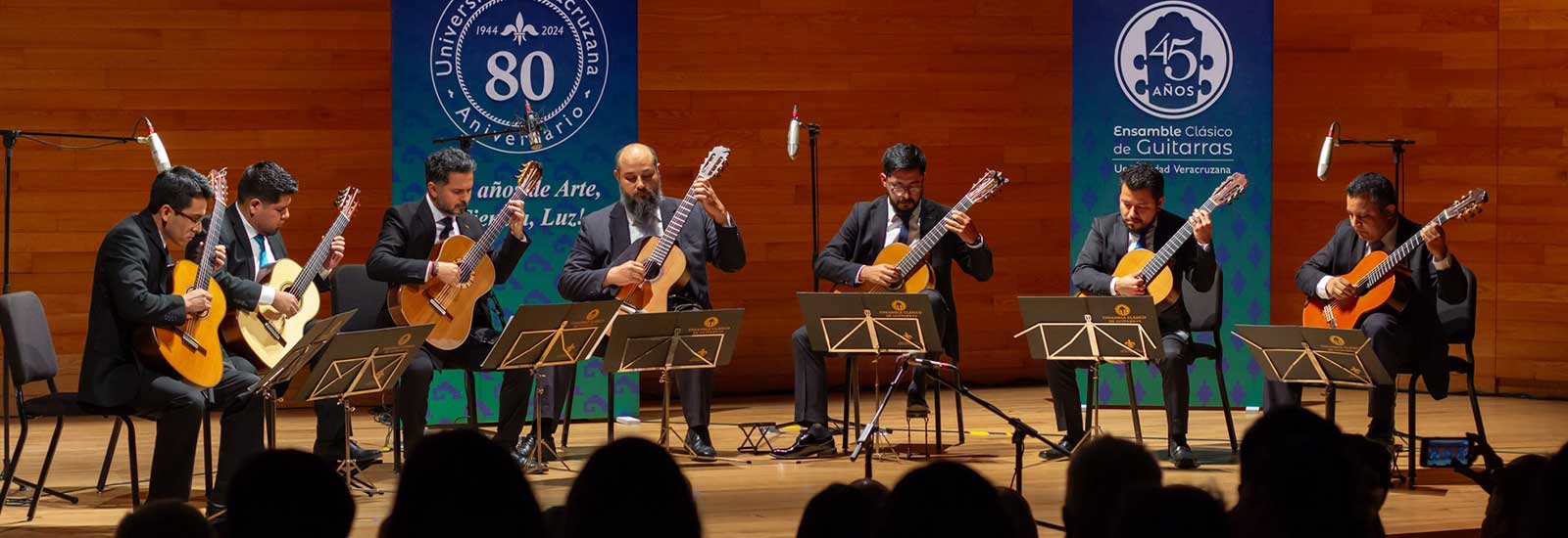 El Ensamble Clásico de Guitarras se estableció en 1979 como parte de la Universidad Veracruzana gracias a la iniciativa del Dr. Alfonso Moreno y al interés del rector, el Dr. Roberto Bravo Garzón. Su objetivo es difundir el arte y la cultura, promoviendo la diversidad musical y sensibilizando a la comunidad mediante presentaciones y actividades educativas. Su repertorio destaca la guitarra de concierto, que abarca desde el periodo barroco hasta el contemporáneo, y las obras de compositores mexicanos.