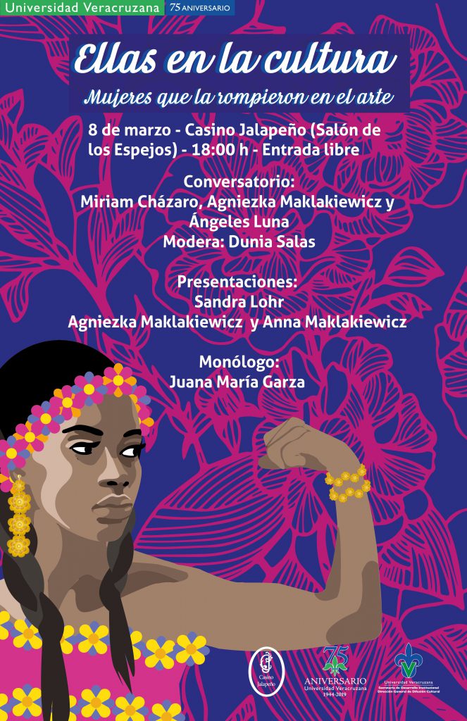 En el marco de la conmemoración del Día Internacional de la Mujer, este viernes 8 de marzo a partir de las 18:00 horas en el Casino Jalapeño, la Dirección General de Difusión Cultural de la Universidad Veracruzana (UV) presenta el conversatorio Ellas en la cultura, Mujeres que la rompieron en el arte.