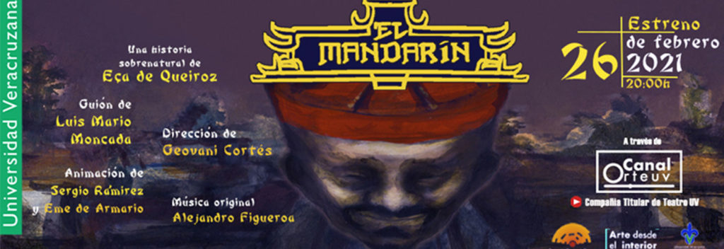 Xalapa, Ver.- La Compañía Titular de Teatro de la Universidad Veracruzana estrenará la serie El mandarín, un relato del escritor portugués Eça de Queiroz, con guion de Luis Mario Moncada (miembro del SNCA – FONCA) y dirección de Geovani Cortés. Teodoro N. es el personaje principal y lo representa el actor Raúl Santamaría, también participan los actores: Juana María Garza, Héctor Moraz, Freddy Palomec, Iris Ladrón de Guevara, Jorge Castillo, Pablos Becerra, José Palacios, Karem Manzur, Marco Rojas, Ana María Aguilar, Carlos Ortega, Yair Gamboa y Miriam Cházaro.