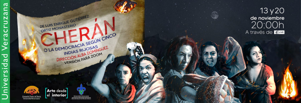 Xalapa, Ver. – La Compañía Titular de Teatro de la Universidad Veracruzana estrenará la versión para Zoom de la obra Cherán o la democracia según cinco indias rijosas, escrita por Luis Enrique Gutiérrez Ortiz Monasterio (miembro del SNCA – FONCA) y dirigida por Alba Domínguez. En Cherán participan diez actores en escena: Miriam Cházaro, Rosalinda Ulloa, Marco Rojas, Karina Meneses, Karem Manzur, Gema Muñoz, Raúl Santamaría, Carlos Ortega, Pablos Becerra y Luisa Garza.
