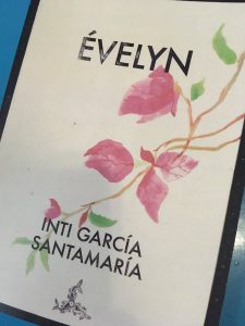 Évelyn (2018) es una publicación de la editorial independiente Dharma y ha sido celebrada por la crítica en diversos foros. El joven poeta Inti García Santamaría (Ciudad Nezahualcóyotl, 1983) ha publicado poemas y traducciones en las revistas El poeta y su trabajo, Universidad de México y Letras Libres. Fue becario del programa Jóvenes Creadores del FONCA 2005-2006, en el área de poesía, y realizó una residencia artística en Estación Pringles, Argentina.