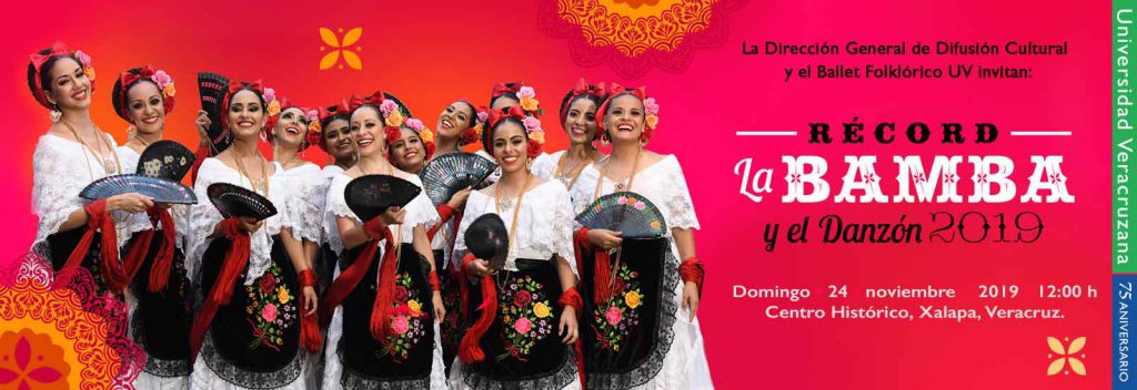 El Ballet Folklórico de la Universidad Veracruzana (UV) se encuentra dando los toques finales para la coreografía masiva La Bamba y el Danzón 2019, que por quinto año consecutivo enfrenta el reto de superar el récord del mayor número de jarochos y jarochas bailando La Bamba, este domingo 24 de noviembre a las 12:00 y 13:00 horas en el centro histórico de Xalapa.