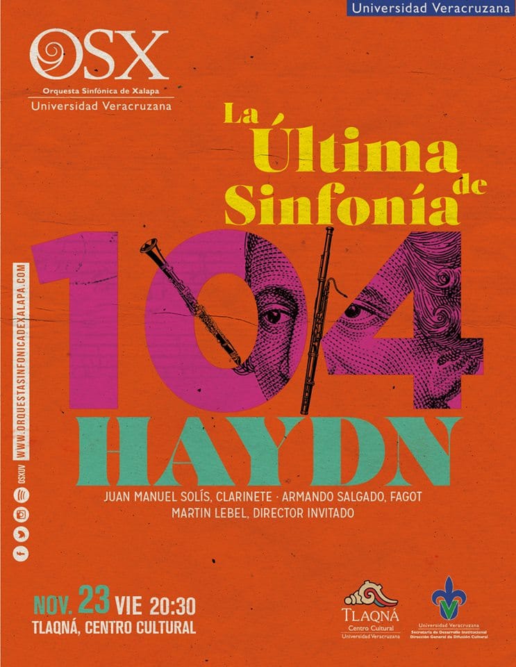 Disfrutemos del concierto La última sinfonía de Haydn de la Orquesta Sinfónica de Xalapa en el Centro Cultural Tlaqná a las 20:30 horas.