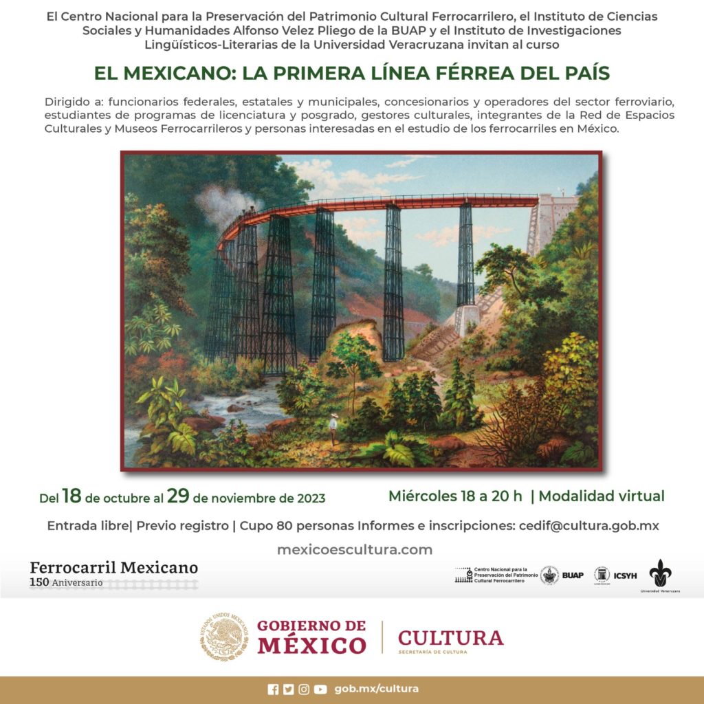 El Centro Nacional para la Preservación del Patrimonio Cultural Ferrocarrilero (CNPPCF) agradece al público el interés y la participación en las actividades que organiza. De manera particular, por el curso en modalidad virtual denominado: “El Mexicano: la primera línea férrea del país”. Si desea inscribirse y participar, es importante atender las siguientes indicaciones:
