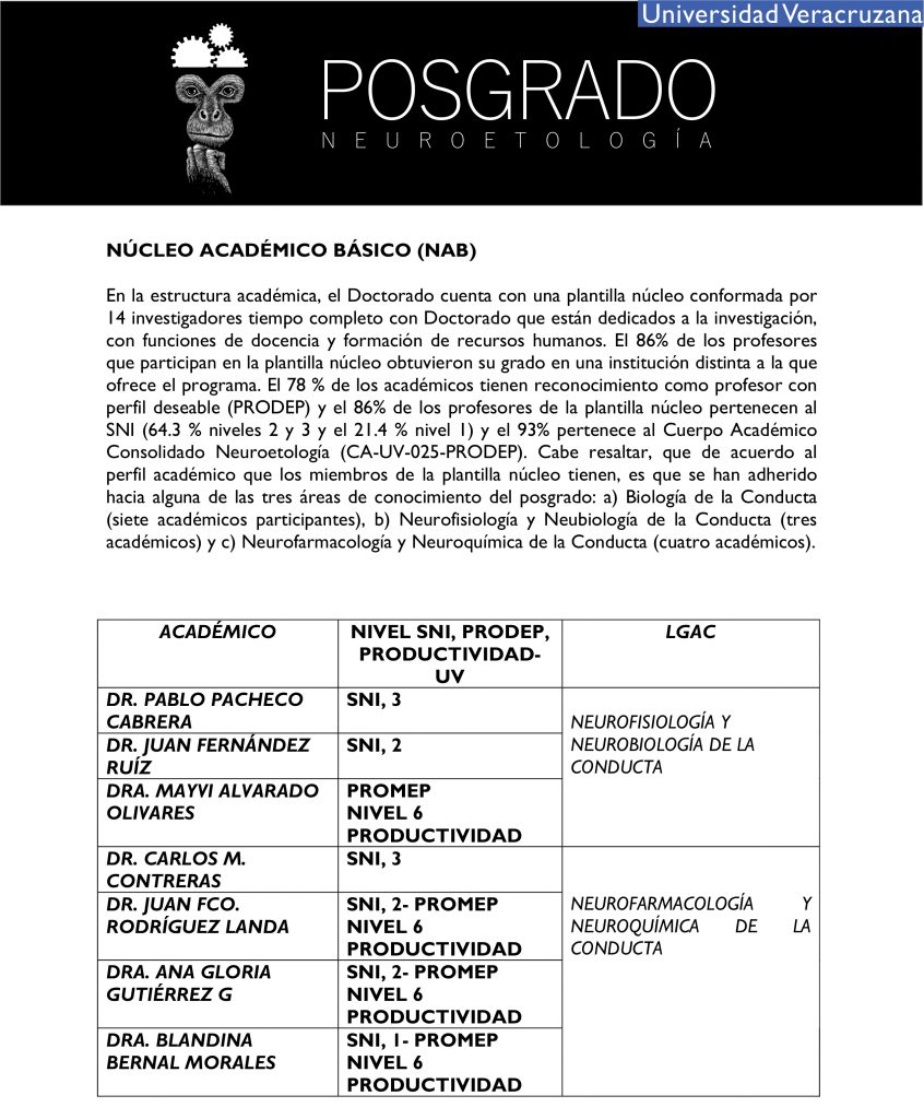 Organización y Contenidos de la Propuesta del Proyecto Posgrado en Neuroetología