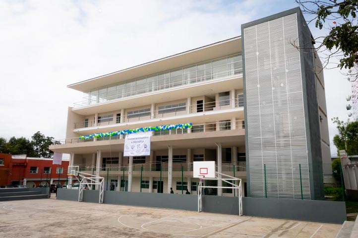 Con una obra exterior de 1,930 metros cuadrados de canchas deportivas, muros de contención, reja y red de protección perimetral.