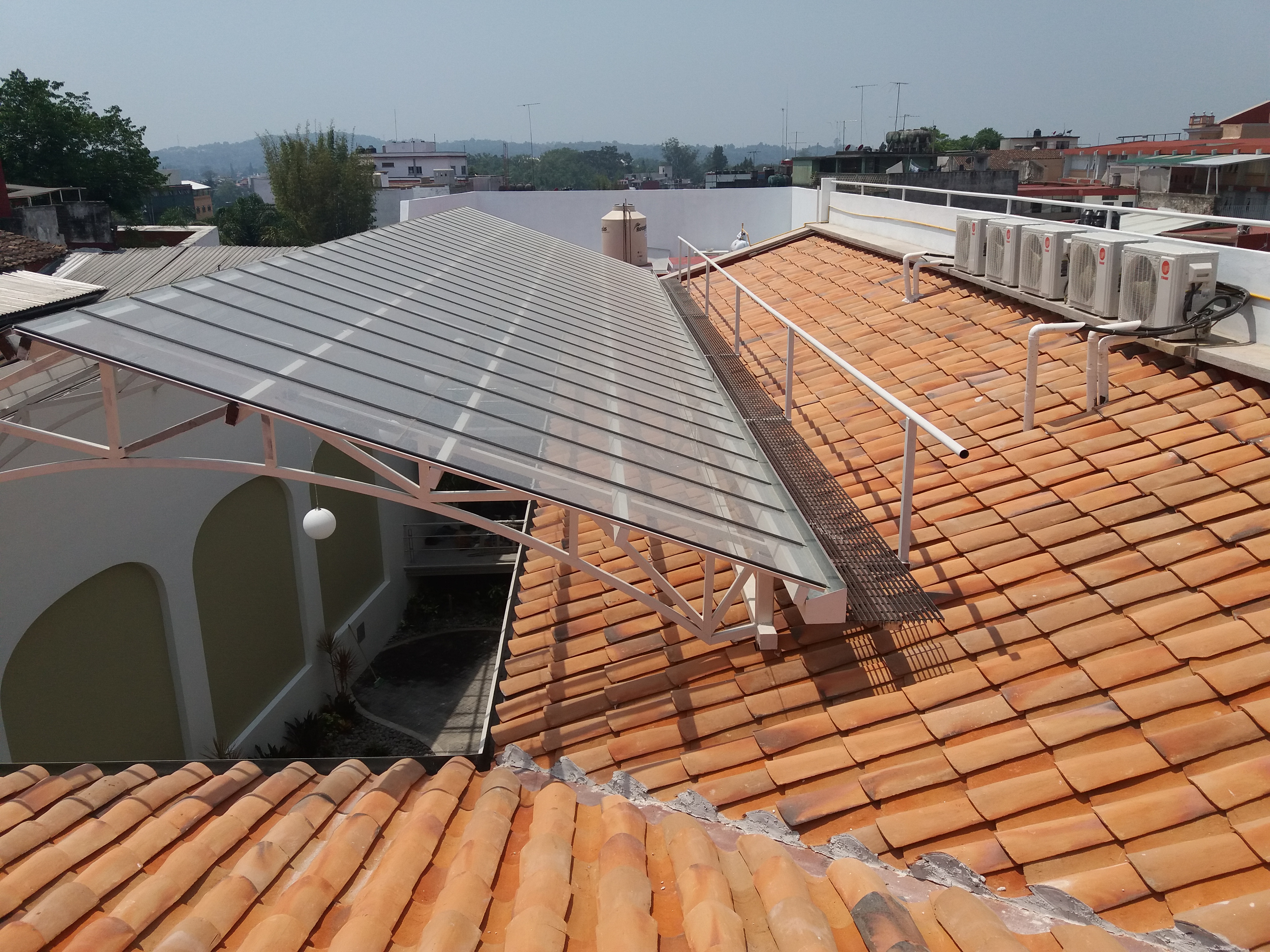 Cubierta del patio central a base de estructura metálica y cristal templado de 9 mm