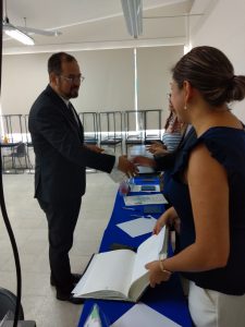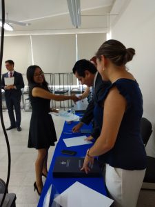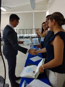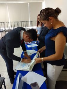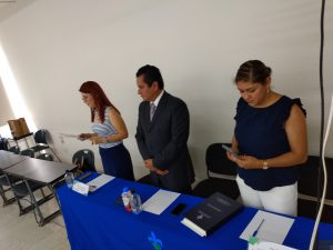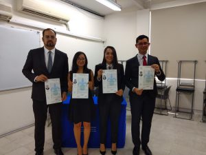 Los alumnos Josué Abel Cuevas Campos, María del Carmen Domínguez Olivos, Ricardo García Alvarado y Mayté del Rocío Sánchez Medina, realizaron la presentación de su Proyecto de Exportación «Jabón biodegradable a Costa Rica», ante los integrantes del jurado Dr. Rogelio Ladrón de Guevara Cortés, Mtra. Rosa Marina Madrid Paredones y M.A.F. Margarita Altamirano Vásquez.