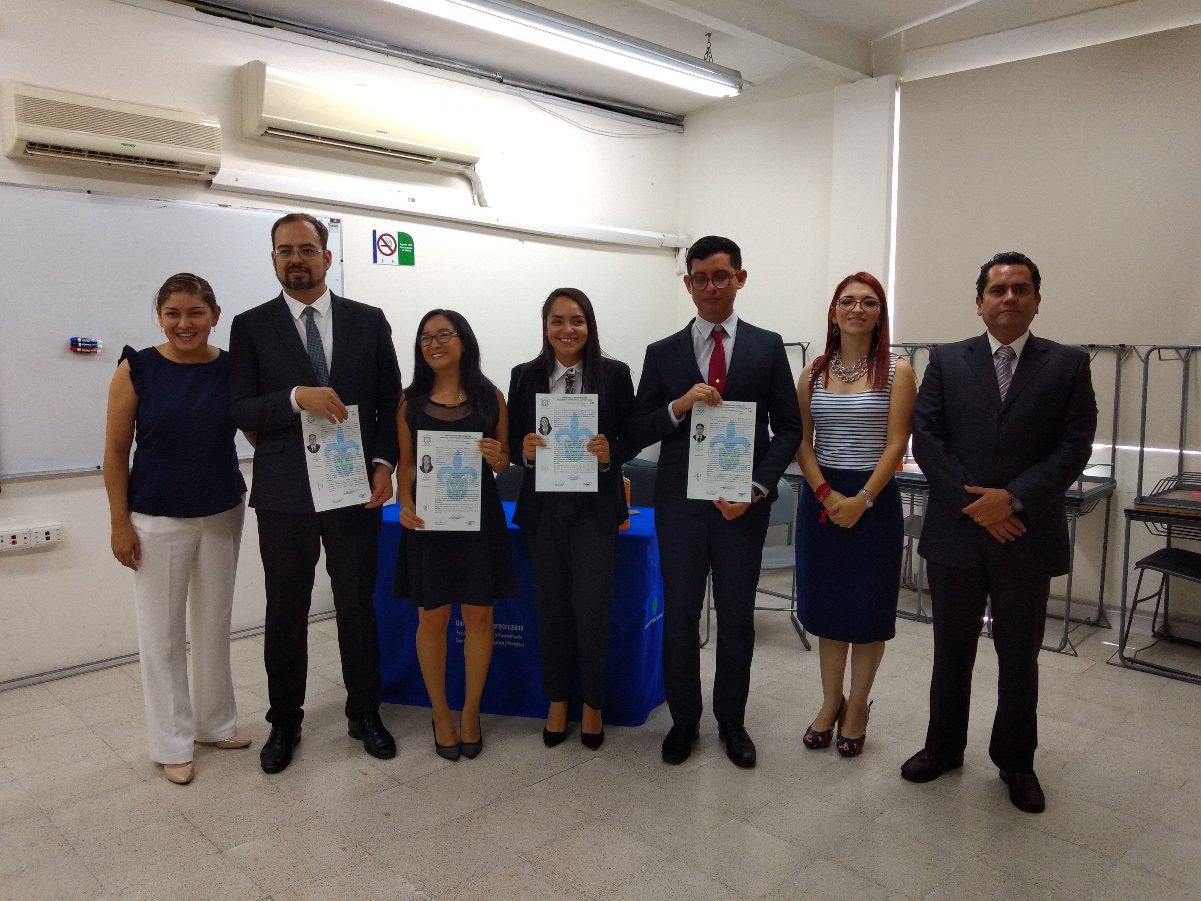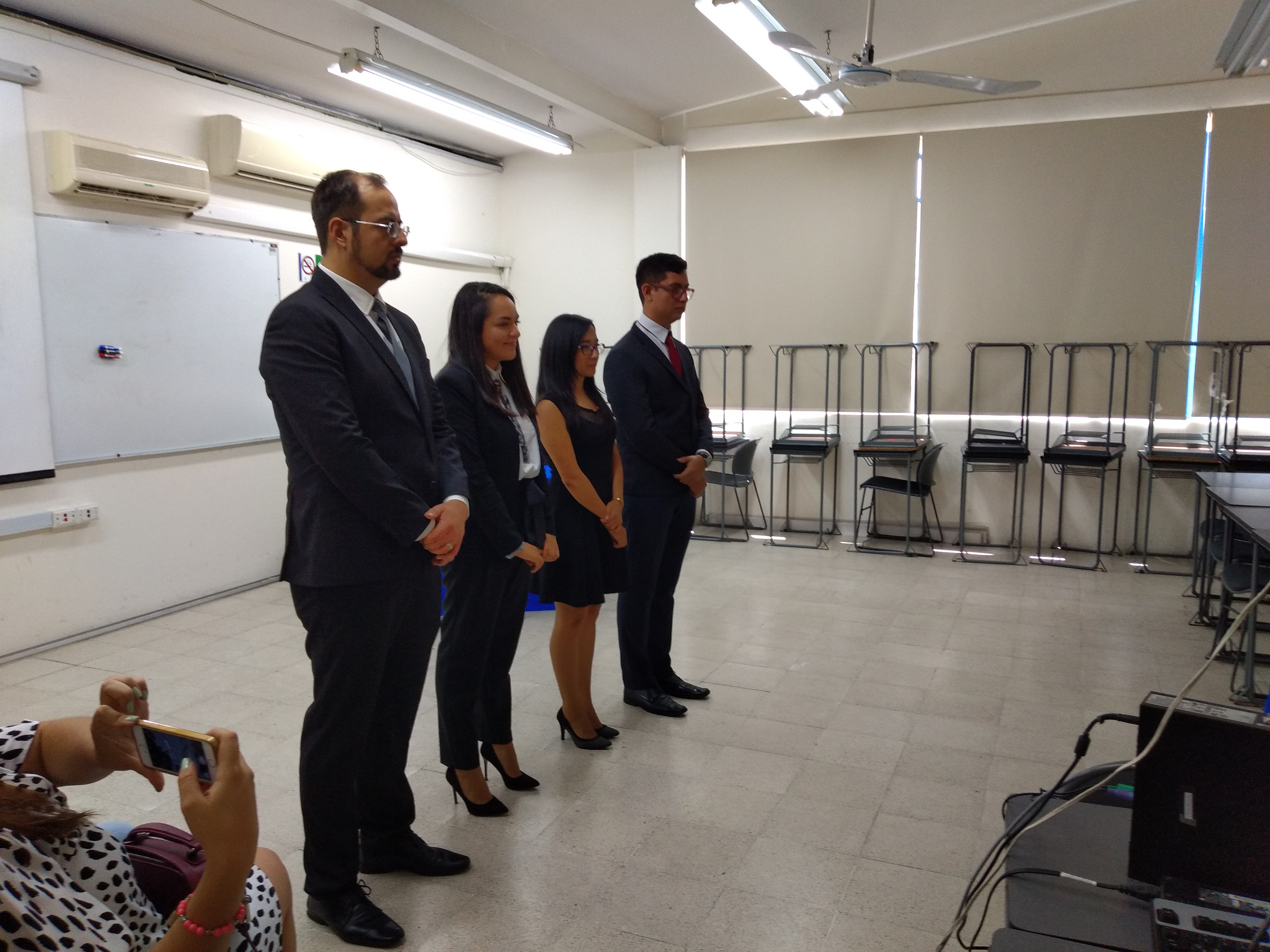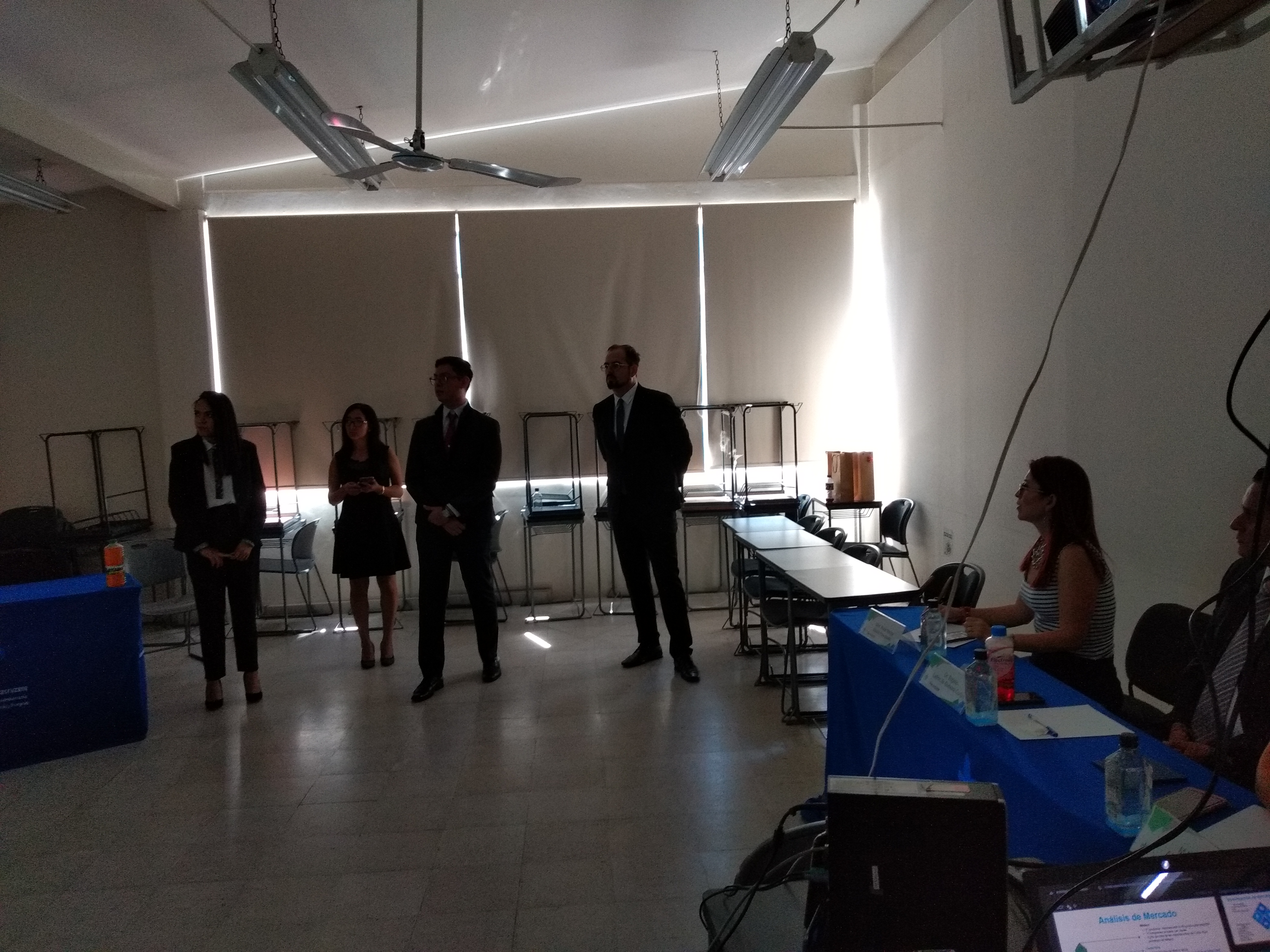 Los alumnos Josué Abel Cuevas Campos, María del Carmen Domínguez Olivos, Ricardo García Alvarado y Mayté del Rocío Sánchez Medina, realizaron la presentación de su Proyecto de Exportación «Jabón biodegradable a Costa Rica», ante los integrantes del jurado Dr. Rogelio Ladrón de Guevara Cortés, Mtra. Rosa Marina Madrid Paredones y M.A.F. Margarita Altamirano Vásquez.