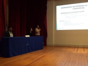 Los alumnos Hernández Pérez Luis Alberto, Moto Chagala Alma Guadalupe y Orozco Chávez Yunuen Xitlaly realizaron la presentación de su Proyecto de Exportación “Jengibre orgánico, molido y congelado a Ontario, Canadá”, ante los integrantes del jurado Mtro. José Netzahualcóyotl Olivares Salazar,M.A.F. Margarita Altamirano Vásquez e Ing. Luis Manuel Cuevas Padilla.