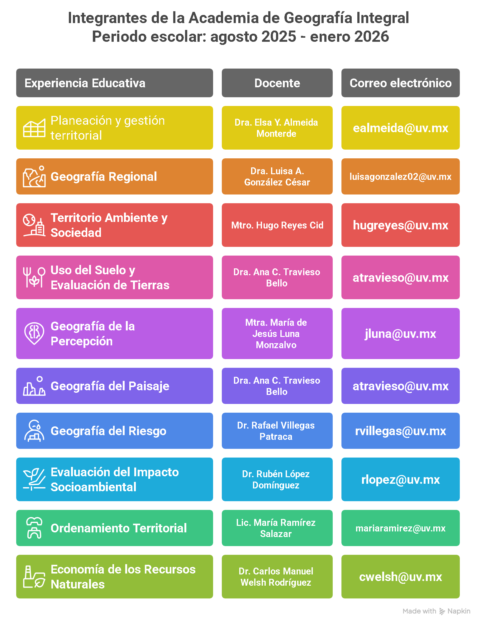 Geografía Integral Experiencias educativas que las integran Geografía Regional Territorio, Ambiente y Sociedad Uso del Suelo y Evaluación de Tierras Planeación y Gestión Territorial Geografía del Paisaje Geografía del Riesgo Geografía de la Percepción Geografía, Sistemas Normativos e Interculturalidad Evaluación del Impacto Socioambiental Ordenamiento Territorial Geografía de los Sistemas Metropolitanos, Transporte y Movilidad Economía de los Recursos Naturales Geografía de la Región Veracruz-Caribe Desarrollo Local y Globalización Coordinador: Dra. Ana Cecilia Travieso Bello – atravieso@uv.mx Regresar