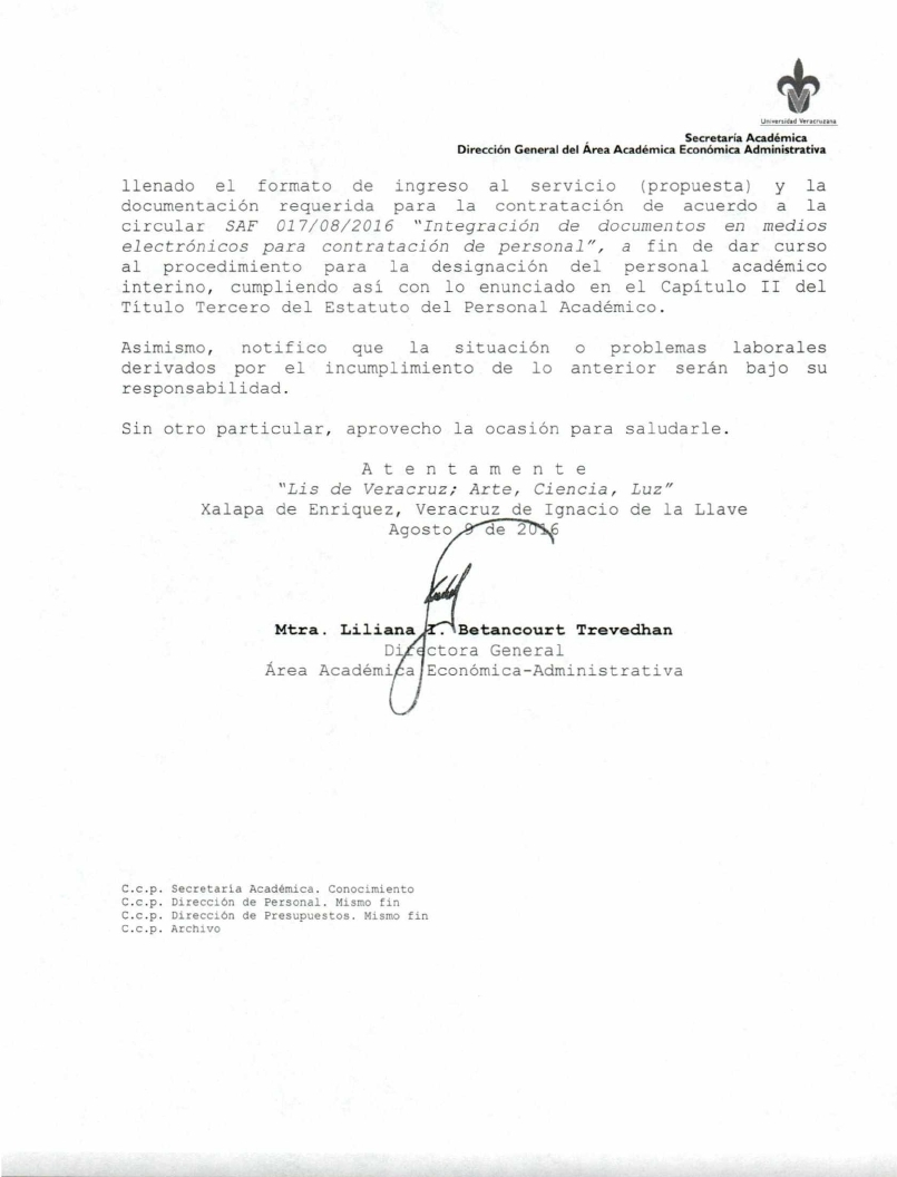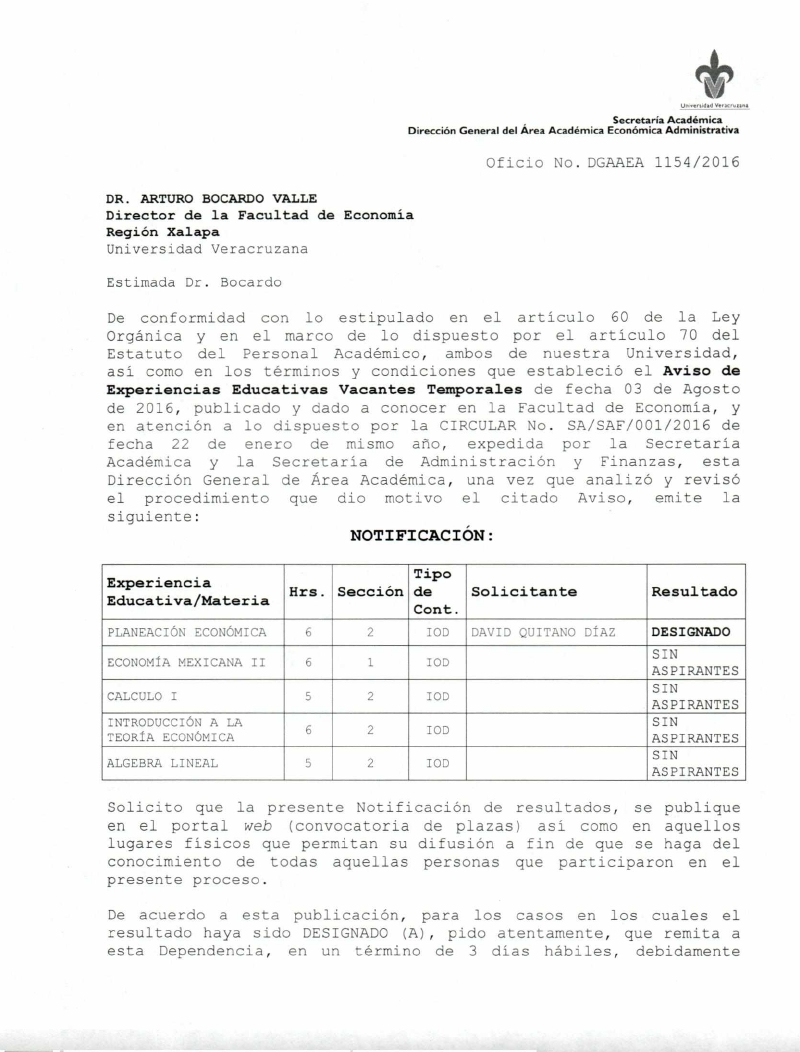 Notificación de Resultados Convocatoria emitida 03 de Agosto – Plaza Interina de Técnico Académico