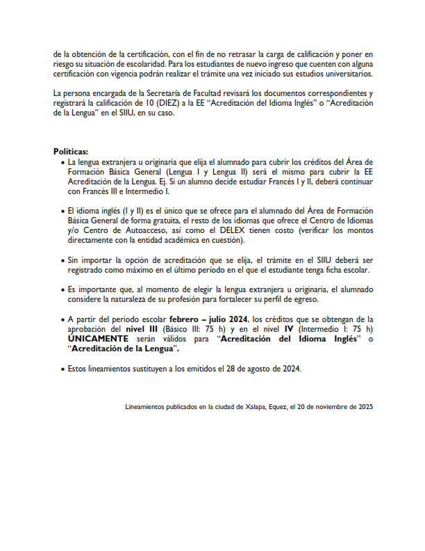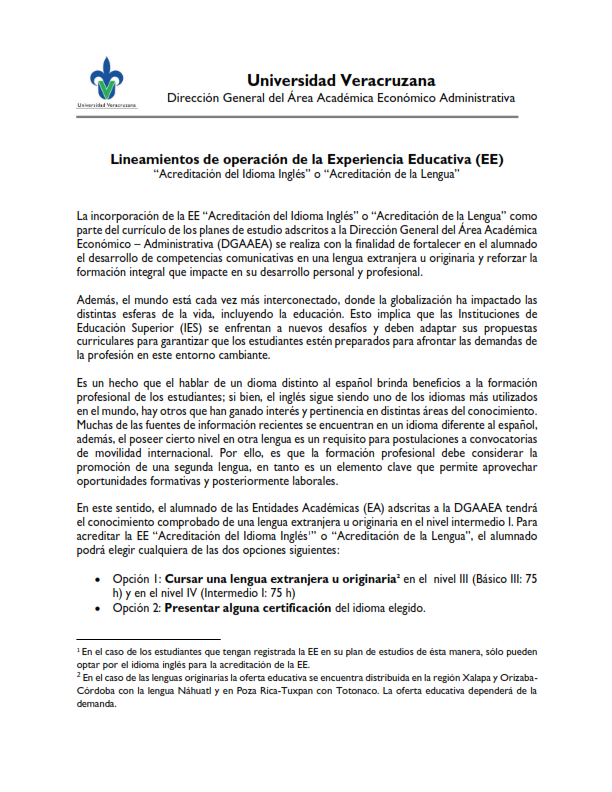 Lineamientos de Acreditación del inglés