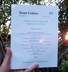 Texto Crítco, nueva época, número 44, enero-junio 2019, revista del Instituto de Investigaciones Lingüístico-Literarias de la Universidad Veracruzana, 173 páginas, 2020. En Xalapa se encuentra en la librería Hyperión.