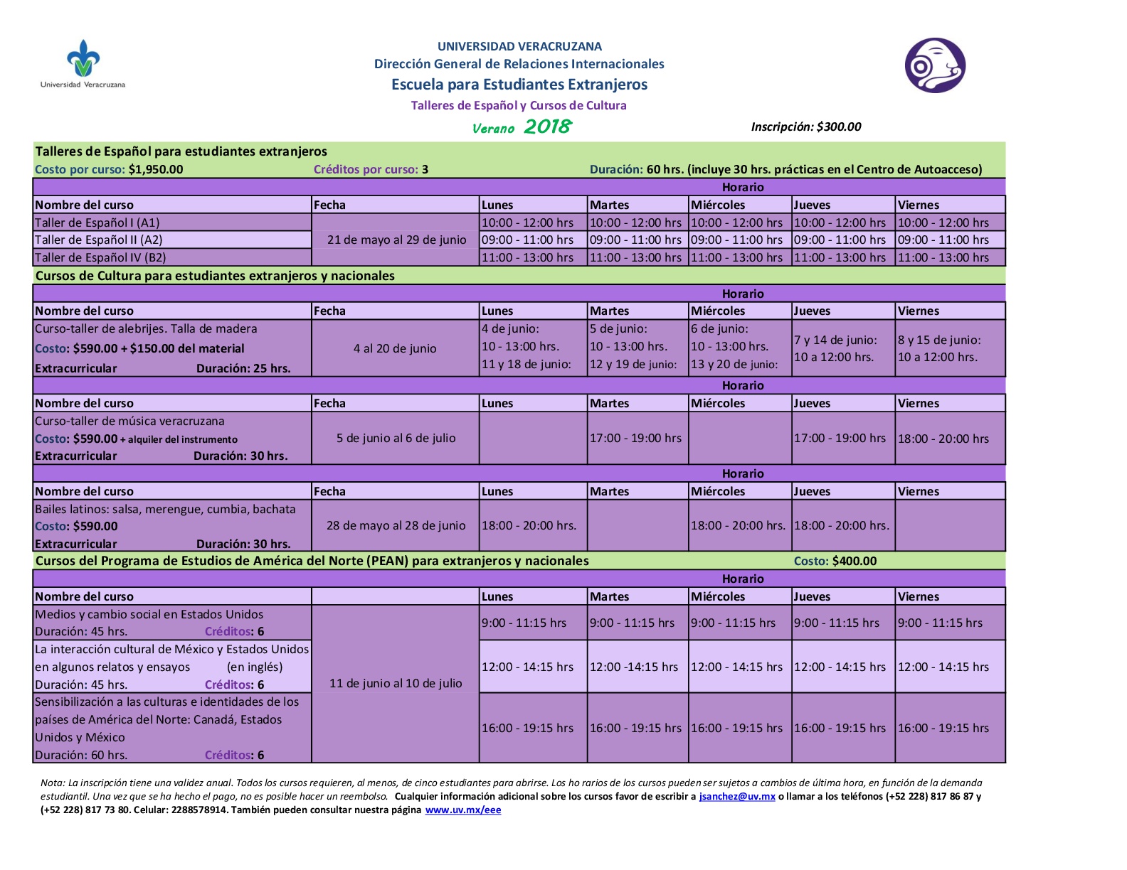 Escuela para Estudiantes Extranjeros INVITAN Curso Del 21 de Mayo al 29 de Junio de 2018 Taller de Español I (A1) Taller de Español II (A2) Taller de Español IV (B2) Inscripciones Abiertas Dirigido a estudiantes Extranjeros Cuota de inscripción $300.00 pesos para estudiantes de nuevo ingreso a la EEE. Duración 30 hrs CONTACTO. |