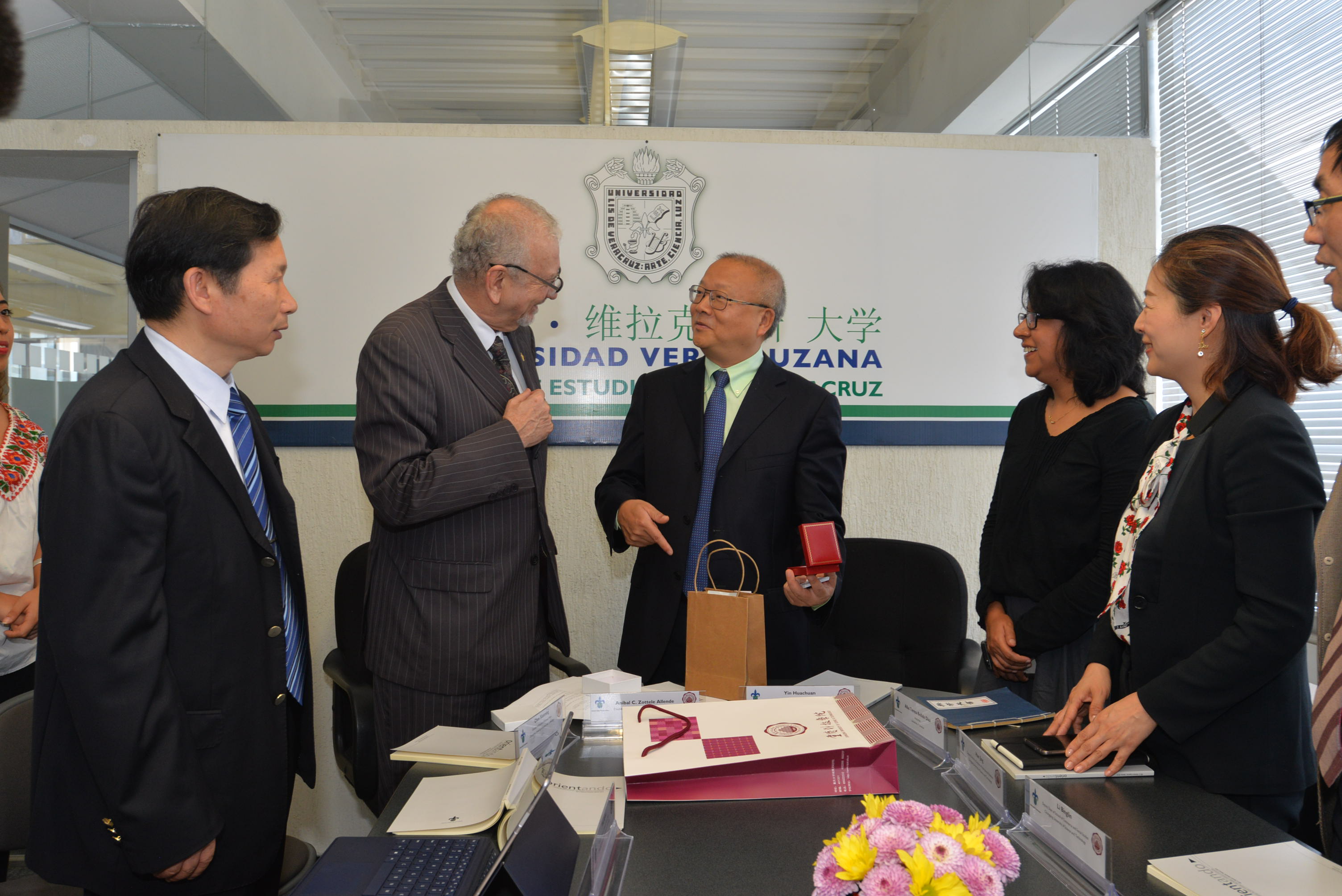 La cita se llevó a cabo en la Unidad de Servicios Bibliotecarios y de Información de Xalapa, recinto en el que se ubican las instalaciones del Cechiver. También estuvieron presentes Alba Teresa Bellido Díaz –intérprete del idioma chino– y Celia Cristina Contreras Asturias –directora de la Escuela de Estudiantes Extranjeros de la UV–, quien apoyó de manera especial a la delegación invitada durante su estancia.