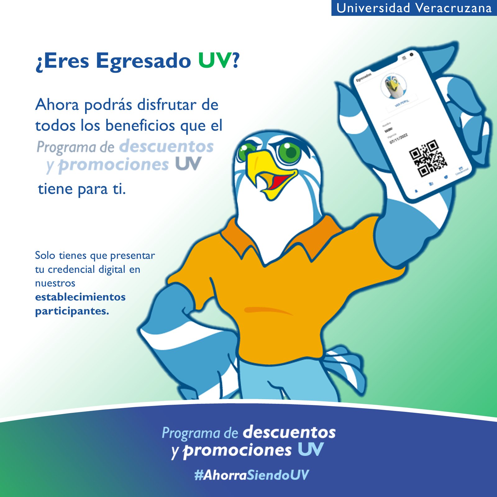 Egresado UV, tu aventura en la Universidad Veracruzana aún no concluye, siempre serás parte de esta casa de estudios y siempre serás un Halcón, por ello, la UV pone a tu disposición estos beneficios, para que puedas seguir disfrutando de algunos servicios y actividades que ofrece tu alma máter.