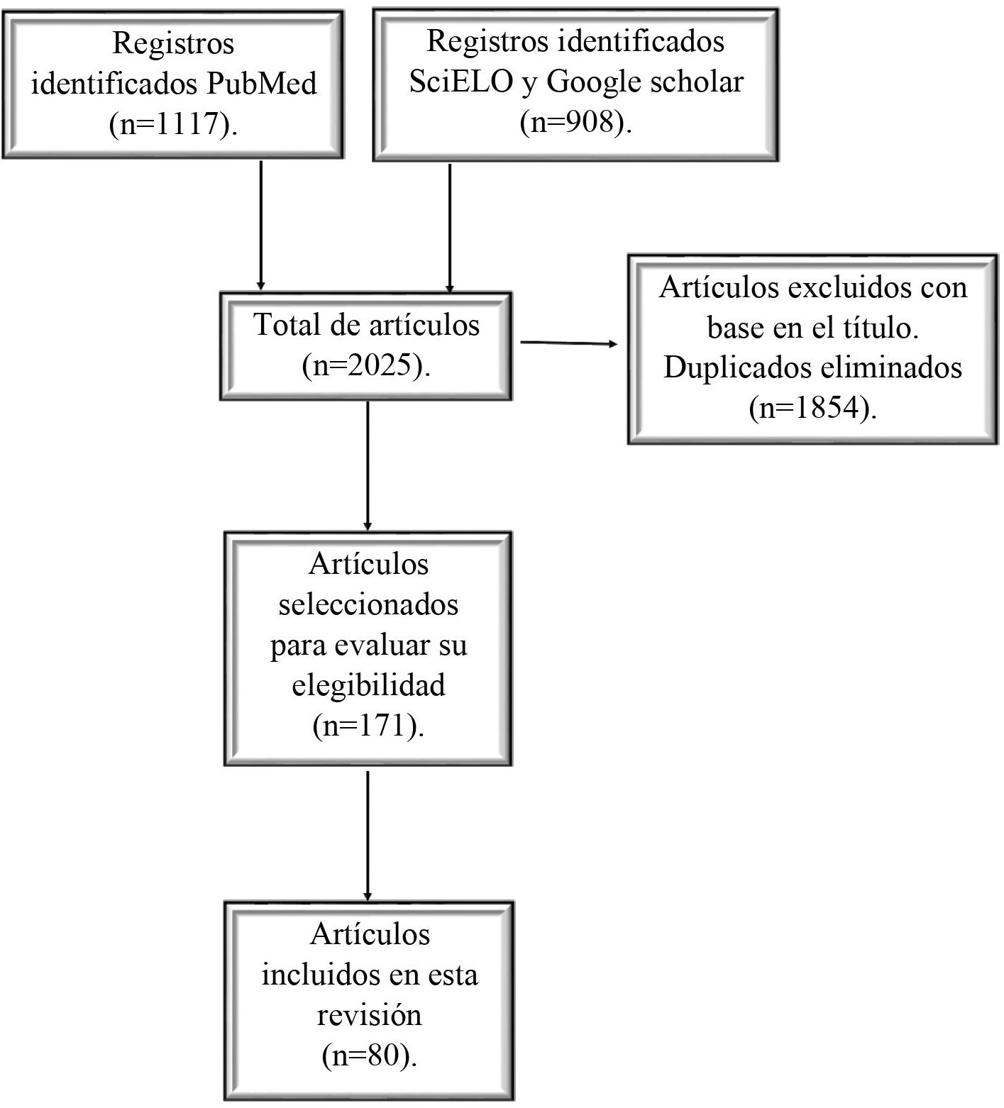 Figura 1. Diagrama de flujo del procedimiento para identificar los artículos que cumplieron los criterios de elegibilidad y que fueron incluidos en esta revisión.
