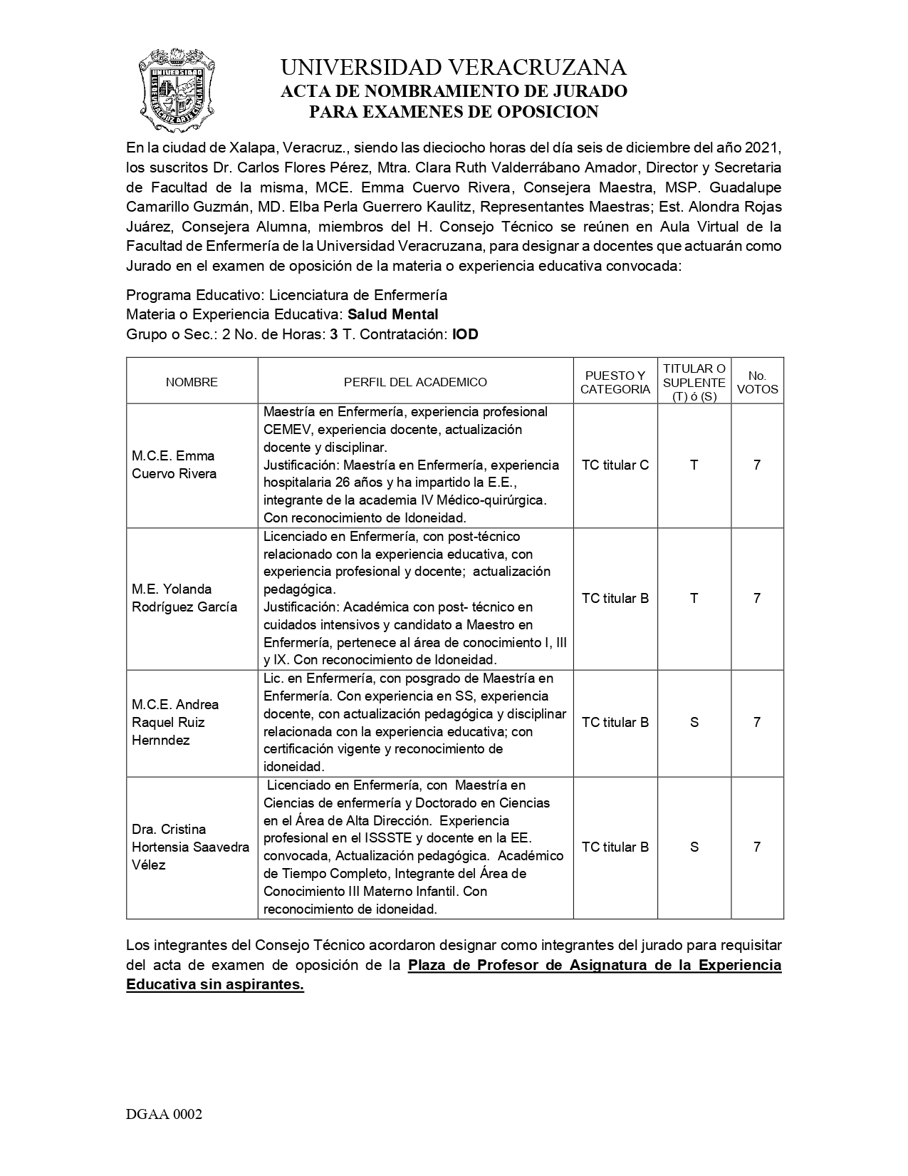 Convocatoria Junta Académica