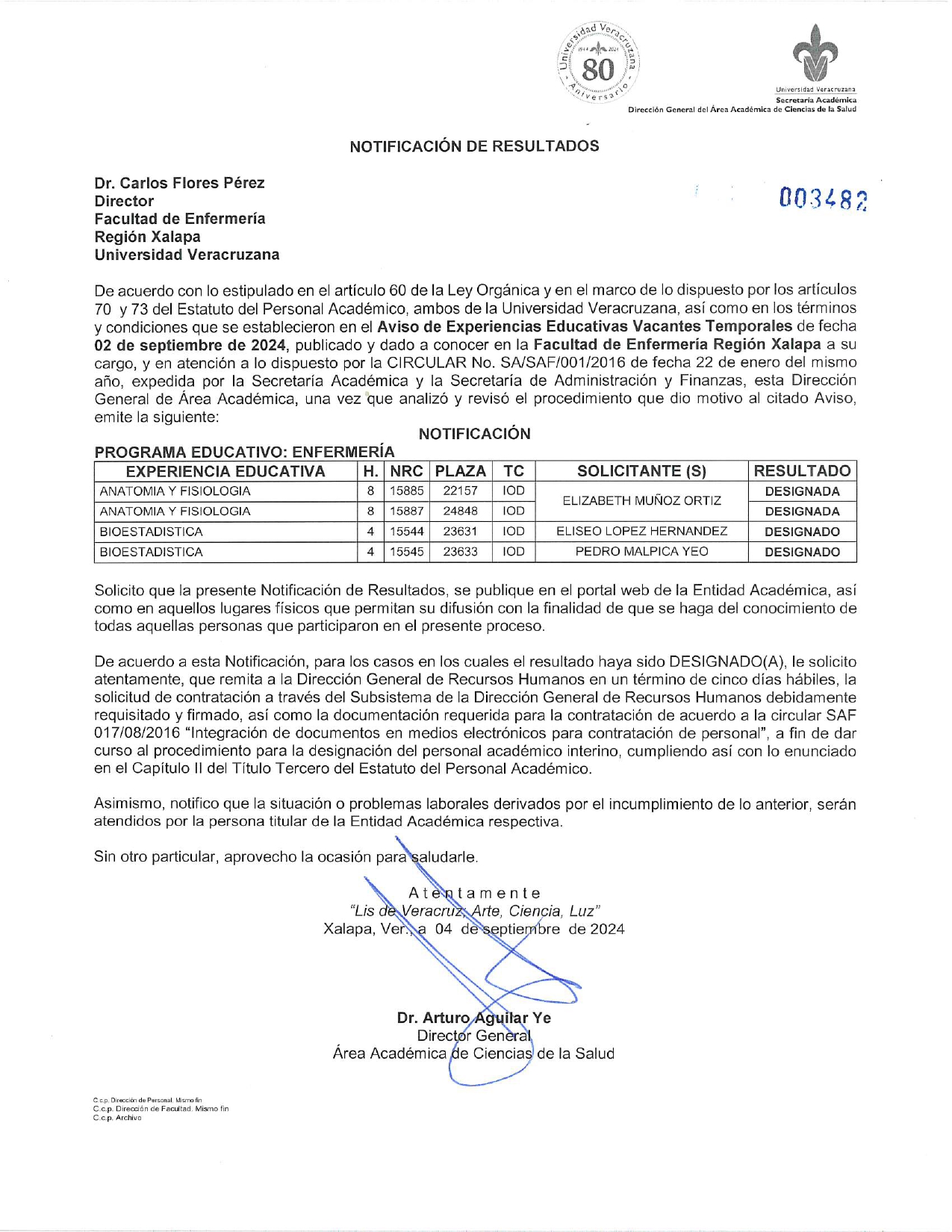 Notificación de resultados 2do. Aviso 70 y 73 Asignación de EE