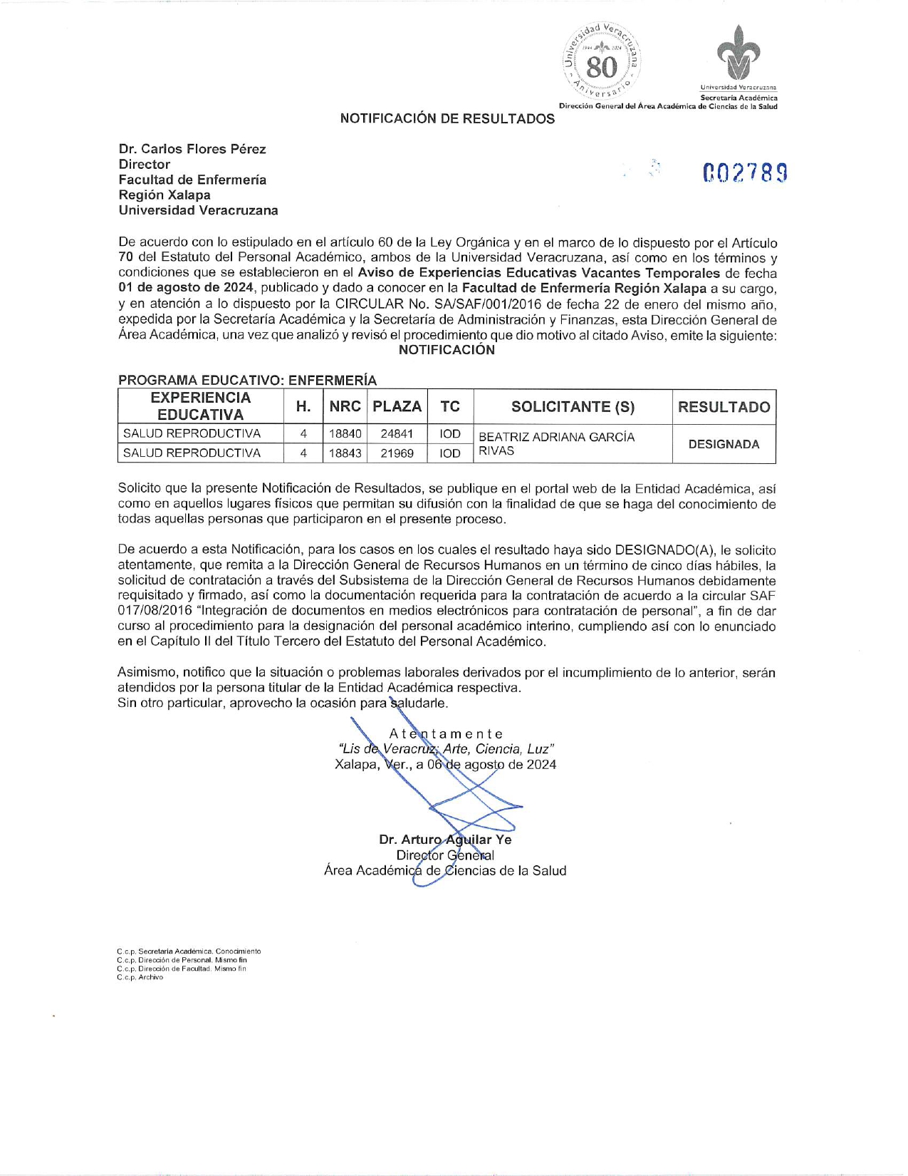 Notificación 2do. 70 y 73 Asignación de EE_ Enf. Materno Infantil