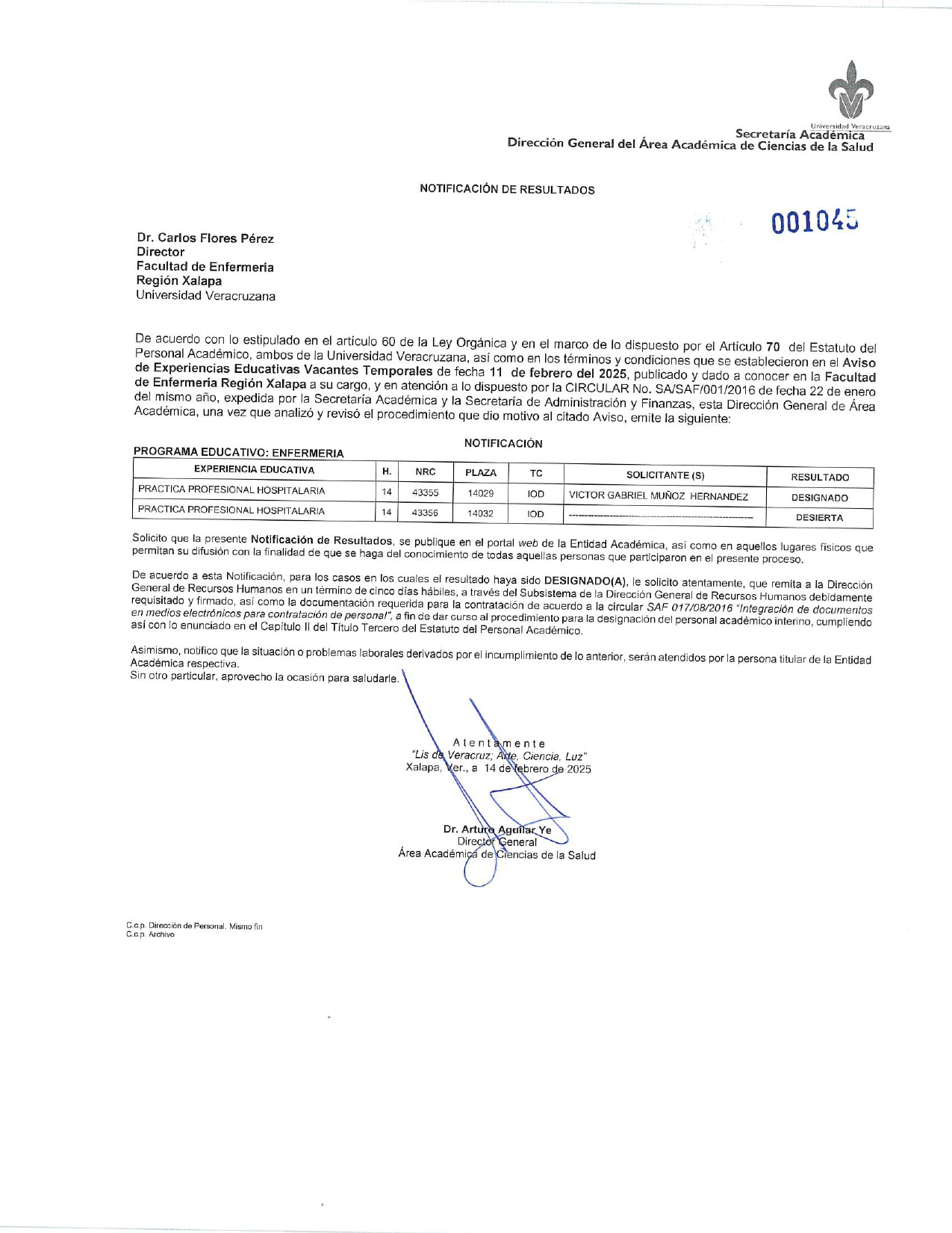 Notificación de resultados 2do. Aviso 70 y 73 Asignación de EE