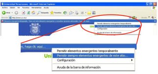 Haz clic en el botón Aceptar y después sobre el mensaje de Elemento emergente bloqueado |