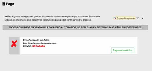 Nota: Algunos navegadores pueden bloquear la ventana emergente que produce el Sistema de Mipago, es importante que desactives está función para poder continuar con tu proceso.