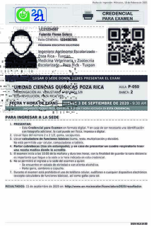 Para el proceso de ingreso, el código QR se utiliza para validar el ingreso a la sede de examen, únicamente para los aspirantes que seleccionaron presentar el examen de ingreso de manera presencial en una sede de la Universidad Veracruzana.