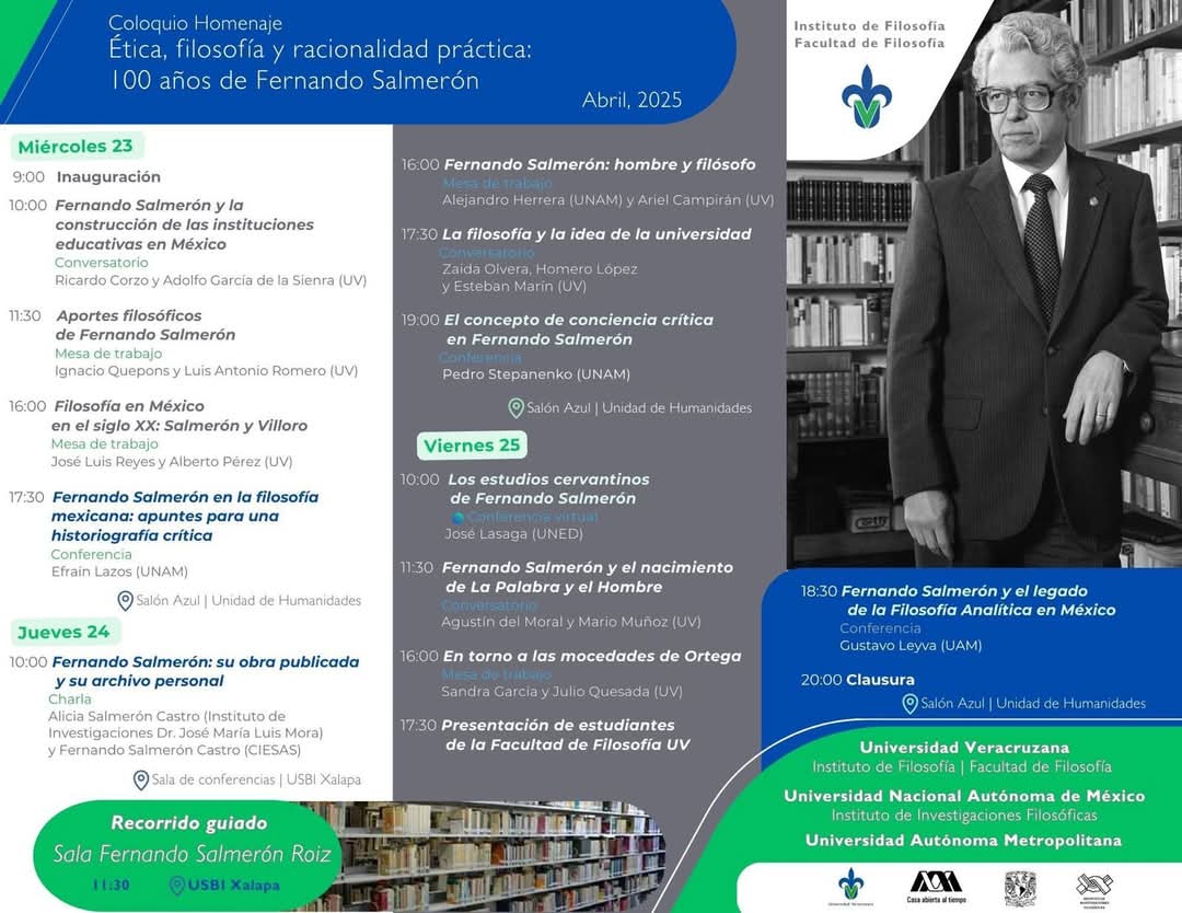 Coloquio Homenaje. Ética, filosofía y racionalidad práctica: 100 años de Fernando Salmerón Cordialmente invitados, les esperamos del 23 al 25 de abril en el Salón Azul de la Unidad Académica de Humanidades.