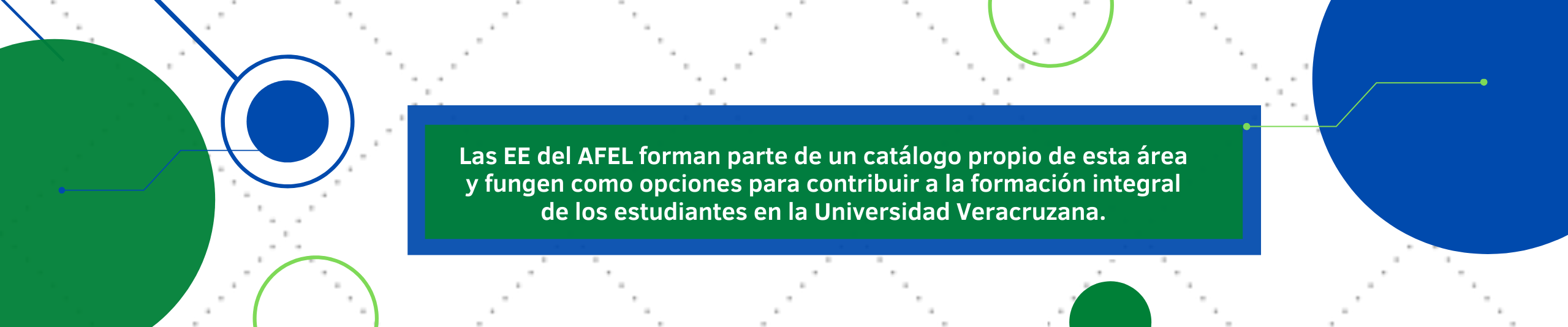 El diseño o actualización del Programa de Experiencia Educativa (PEE) del Área de Formación de Elección Libre (AFEL) podrá ser propuesto por personal académico de la Universidad Veracruzana adscrito a institutos, centros y programas adscritos a la Dirección General de Investigaciones, Dirección General de Difusión Cultural, Dirección de Actividades Deportivas, Dirección de la Universidad Veracruzana Intercultural, Dirección General de Relaciones Internacionales, Coordinación Universitaria para la Sustentabilidad, Sistema de Enseñanza Abierta, Dirección General del Área Académica de Ciencias de la Salud y la Dirección General del Área Académica de Artes. |