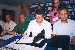 Luego de firmar, junto con el vicerrector Enrique Ramírez Nazariega