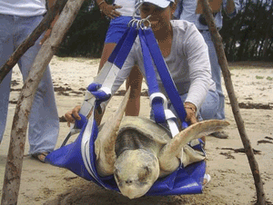 marcan, pesan y miden a las tortugas lora y blanca que desovan en
