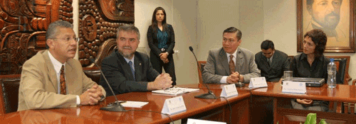 rector de la UV, Raúl Arias; el representante de la UPC, Mateo