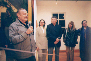 Luego de cortar el listón inaugural, el pintor mexicano inició