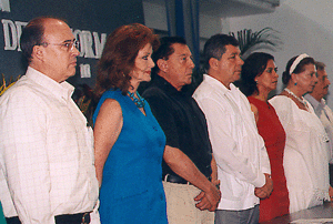 Coatzacoalcos, Ver.- Julio Rubio Oca, Christiane Magnani, Miguel Alemàn, Vìctor Arredondo, Estrella X. Dorantes y Marcela Arregui, durante el acto inaugural de las modernas instalaciones educativas de la UV. (Foto: Luis Fernando Fernández)