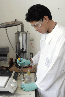 estudiantes de posgrado, realiza experimentos en los laboratorios