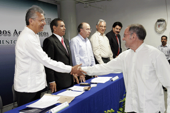 el rector de la UV, Raúl Arias Lovillo, el subsecretario de