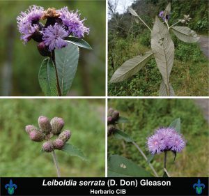 Las capitulescencias están agregadas en conjuntos densos terminales, conformados por 3 a 12 cabezuelas. Las cabezuelas son discoides y presentan solo un tipo de flores. El involucro (estructura que rodea a las flores) es urceolado, mide entre 1.3 a 2.8 cm de alto. Los filarios (estructuras que conforman el involucro( miden de 11 a 13 mm de largo y 1.3 a 3 mm de ancho, tienen forma elíptico-triangular, superficialmente presentan una nervadura ligeramente blanquecina con una superficie tomentosa, color grisácea a purpura.