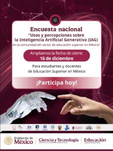 Participar en el Censo Nacional sobre Usos y Percepciones de la Inteligencia Artificial Generativa (IAG) es una oportunidad para contribuir al conocimiento sobre cómo esta tecnología está transformando la educación superior en México. A través de tus respuestas, podrás ayudar a identificar brechas de conocimiento, tendencias de uso y necesidades formativas tanto en el ámbito académico como personal. La información recabada permitirá diseñar estrategias más efectivas para el uso responsable y ético de la IA, orientando políticas y acciones que fortalezcan la innovación educativa. Tu participación, honesta y reflexiva, es clave para construir una visión más completa del papel que la IA está teniendo en nuestras aulas, investigaciones y experiencias cotidianas.