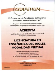 - Acreditación COAPEHUM 2023 de la Licenciatura en Enseñanza del Inglés.