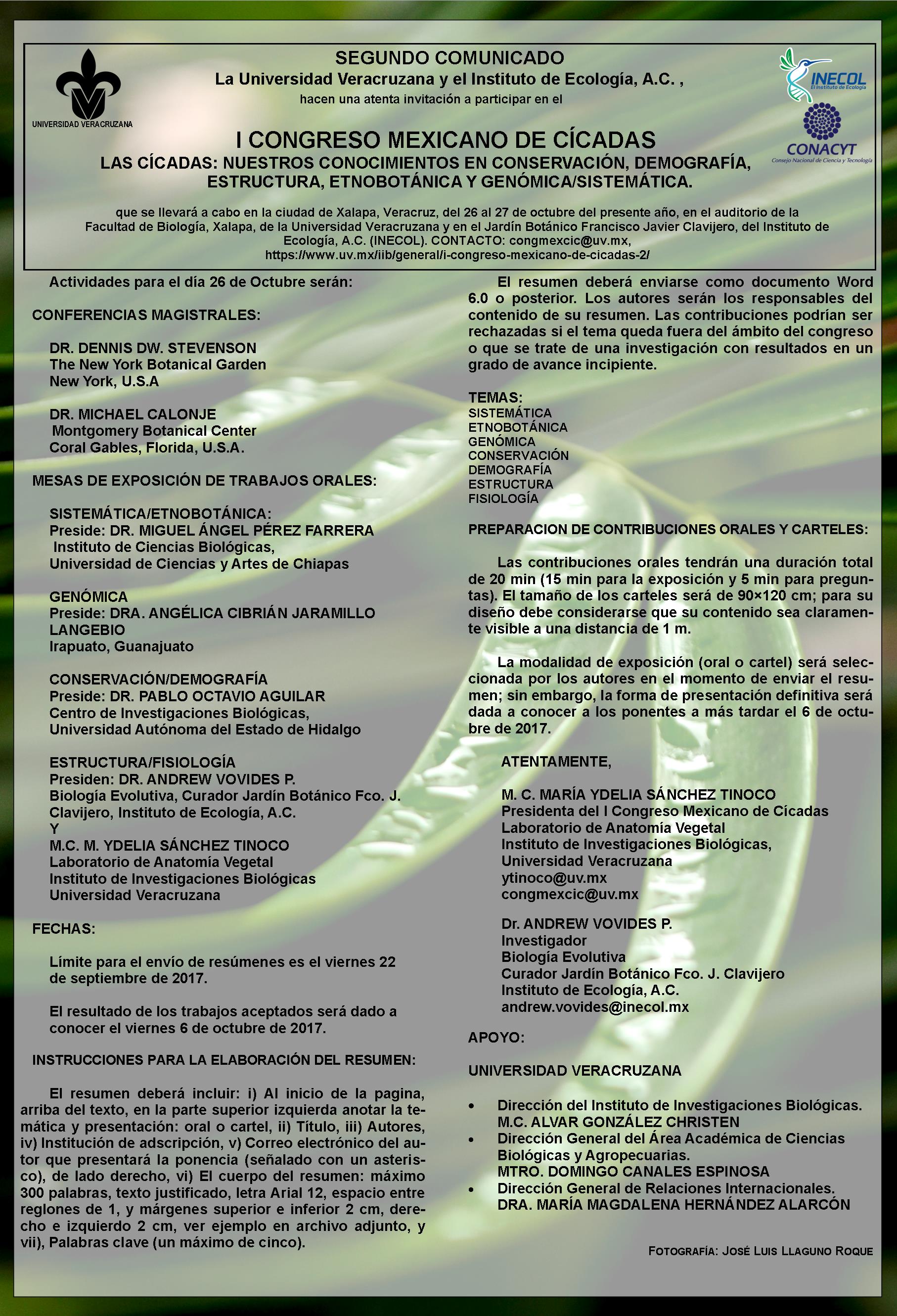2do. Comunicado – CONGRESO MEXICANO DE CÍCADAS