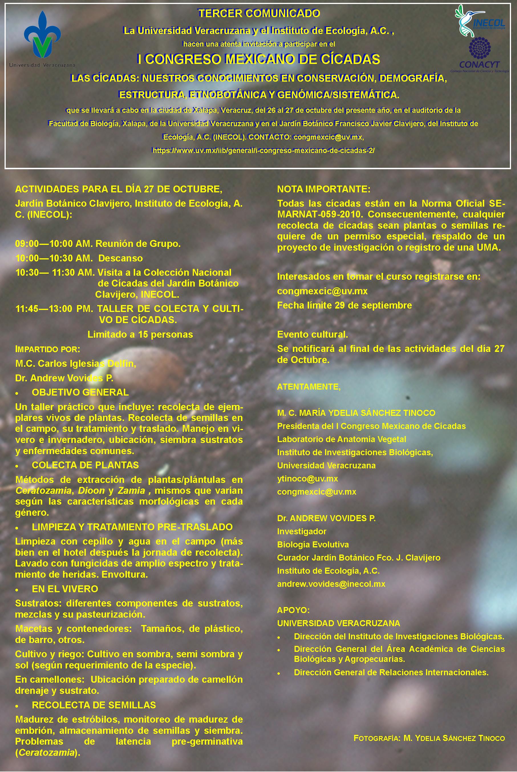 3er. Comunicado – CONGRESO MEXICANO DE CÍCADAS
