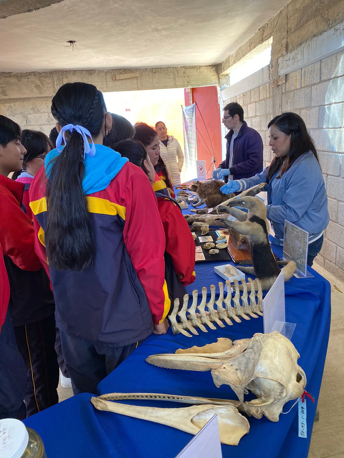En la semana del 19 a 23 de febrero, las académicas del IIB recibieron a los estudiantes del Instituto Villa de Cortés Xalapa. La jornada fue iniciada por la Dra. Tania Romo González de la Parra y la Dra. Antonia Barranca Enríquez, quienes recibieron la visita de alumnos de nivel bachillerato, y compartieron con ellos sus conocimientos acerca de la importancia de estudiar la vida y sus fenómenos desde una perspectiva multidisciplinaria, para favorecer la promoción de la salud como un bien integral y sostenible. Igualmente, la Dra. Betzaida Cuevas, mostró a alumnos y alumnas de primero de secundaria la importancia y formas de estudiar los genes. Por su parte la Maestra en Educación Blanca Elizabeth Cortina Julio, y sus alumnos Alondra Andrade Rosado, Javier Jerónimo Aguilar y Claudia Fernanda Larruz Medina compartieron con los alumnos de quinto grado de primaria conocimientos y estrategias para fomentar la conservación del manatí y del ocelote. Posteriormente, la Dra. Martha Lucía Baena Hurtado y sus estudiantes Paola Monserrath Flores Lucas y Juan Carlos Ramírez Ramón incentivaron en niños y niñas de primer grado, la curiosidad por el estudio de los insectos, al observar una colección y colonia de hormigas, y de grillos. También estos pequeños realizaron una visita breve para conocer parte de la colección de mamíferos terrestres del Estado de Veracruz que resguarda nuestro instituto, y contaron con el apoyo de la M. en C. Nallely Verónica Rodríguez Santiago y del M. en C. Yusef Elip Chamlaty Fayad. La Dra. Isabel López Zamora, recibió a los alumnos del Taller de Ecología compartiendo con ellos sus conocimientos y vivencias de su trayectoria como investigadora en ecología de plantas invasoras. Finalmente, la Dra. Isabel del Carmen Hernández Candelario, y la M. en C. Nallely Verónica Rodríguez Santiago, visitaron la Telesecundaria Gregorio Torres Quintero a la cual se llevó parte de la colección de mamíferos del instituto. En esta visita la Mtra. Nallely compartió con los estudiantes la importancia de las colecciones científicas y la Dra. Isabel platicó sobre la importancia de los mamíferos marinos y su relación con los humanos. Posteriormente, ambas mostraron los ejemplares de la colección científica, apoyados por la M. en N. Mari José Escobar, el M. en C. Yusef Chamlaty y la estudiante Karla Alba, colaboradores del Laboratorio de Vertebrados del Instituto de Investigaciones Biológicas. Las actividades fueron muy gratificantes para nuestras académicas y siempre hubo participación y curiosidad, acompañada de preguntas, por parte de los estudiantes.