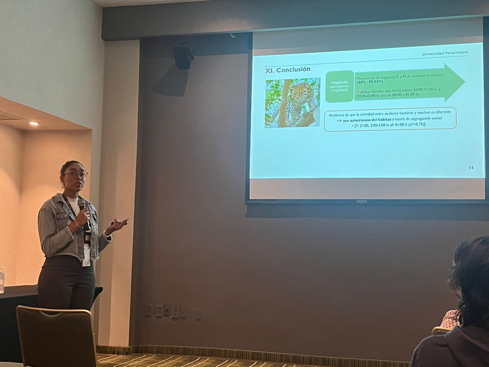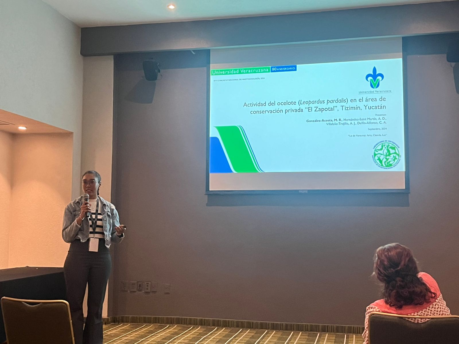 El pasado 23 de septiembre, durante el desarrollo del XVI CONGRESO NACIONAL DE MASTOZOOLOGÍA “40 años impulsando el estudio y la conservación de los mamíferos de México” que se llevó a cabo del 23 al 27 de septiembre de 2024 en la ciudad de Pachuca de Soto, Hidalgo, nuestra coolaboradora del Laboratorio de Vertebrados y estudiante de la Maestría en Biología integrativa Mónica R. González Acosta, obtuvo el 2° lugar en presentación oral de tesis de Licenciatura, con el trabajo titulado Actividad del ocelote (Leopardus pardalis) en el área de conservación privada “El Zapotal”, Tizimín, Yucatán, bajo la direccion de los Dres. Álvaro J. Villafañe-Trujillo y Christian A. Delfín Alfonso en coolaboracion muy estrecha con el Dr. Anuar D. Hernández-Saint Martin de PRONATURA, Yucatán.
