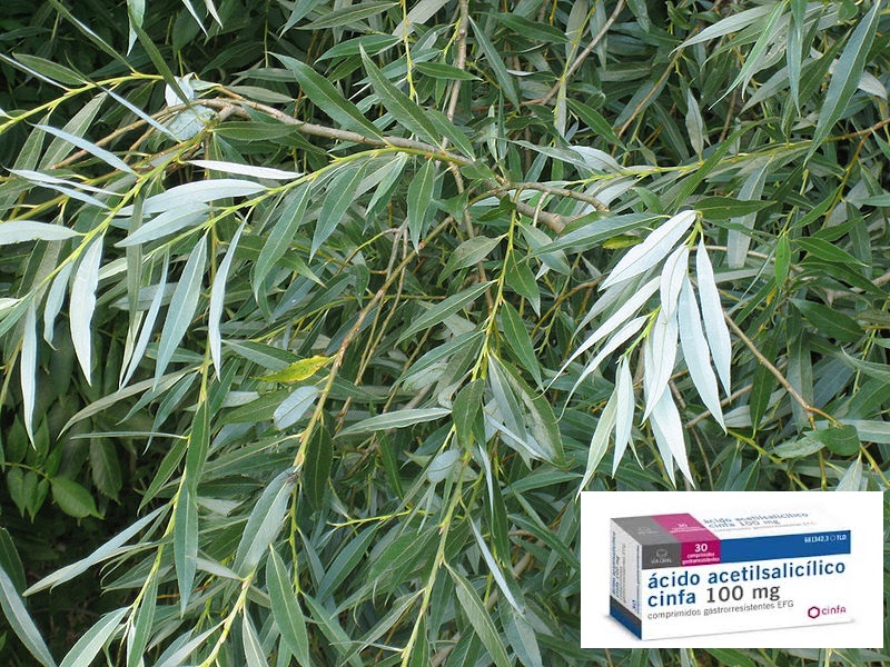 Conocida comercialmente como aspirina, el ácido acetilsalisílico fue sintetizado a partir de la salicilina, presente en la corteza del sauce blanco.